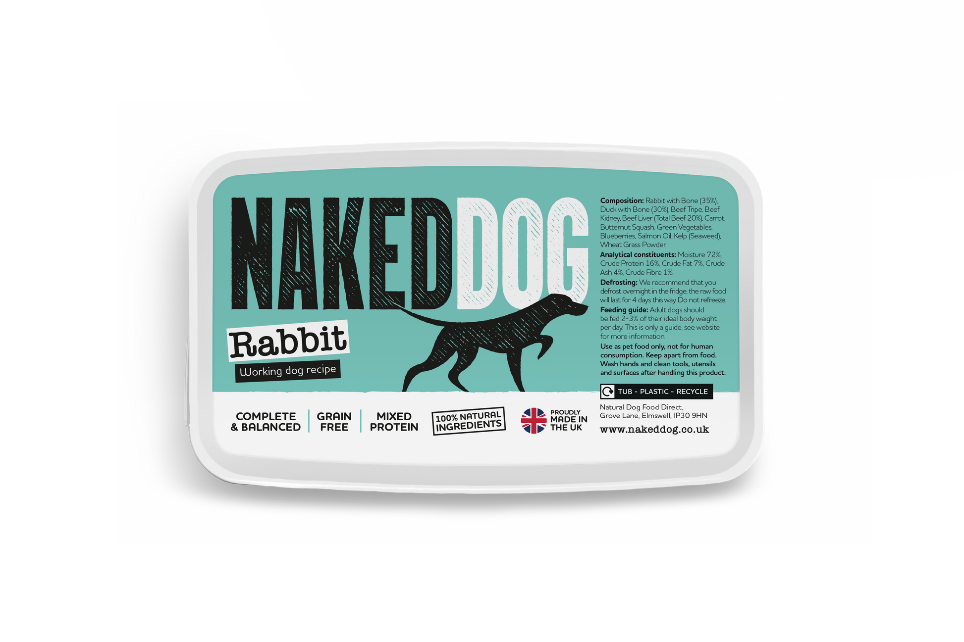 User friendly recyclable tub takes the fuss and mess out of raw feeding - and can be easily stored in the fridge for up to 4 days!